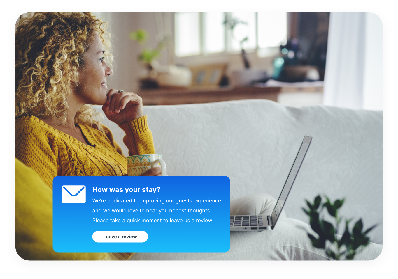 With your post-stay email, you are able to incentivize repeat guests along with collecting reviews from past guests which will increase your bookings and your revenue.