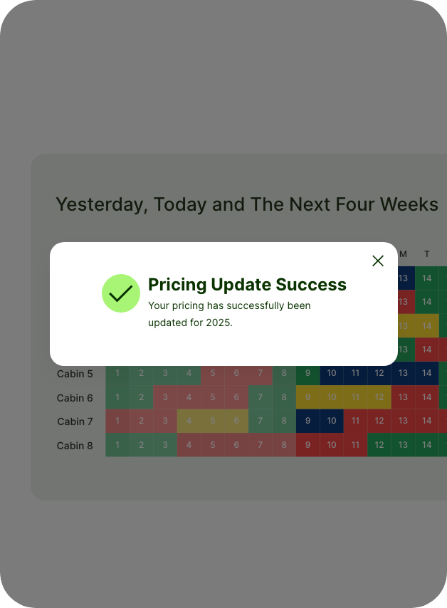 With the ability to quickly update rates across all platforms, you can react to market trends, demand fluctuations, or special events. Alternatively you can simply update your rates for the following year using a % or multiple increase.
