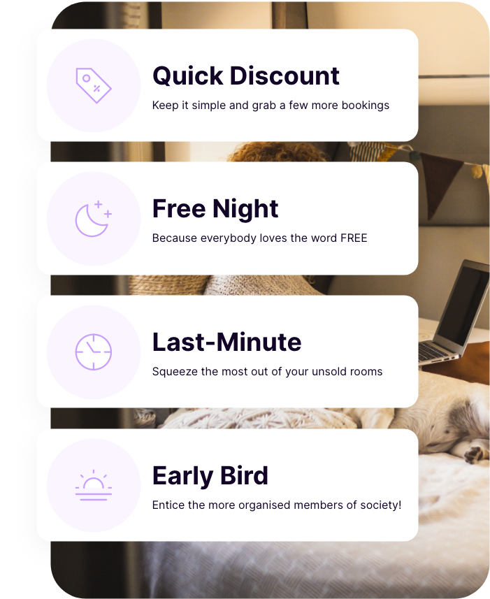 Quick Discount allows you to quickly setup and customize your promotion to generate additional bookings and revenue.