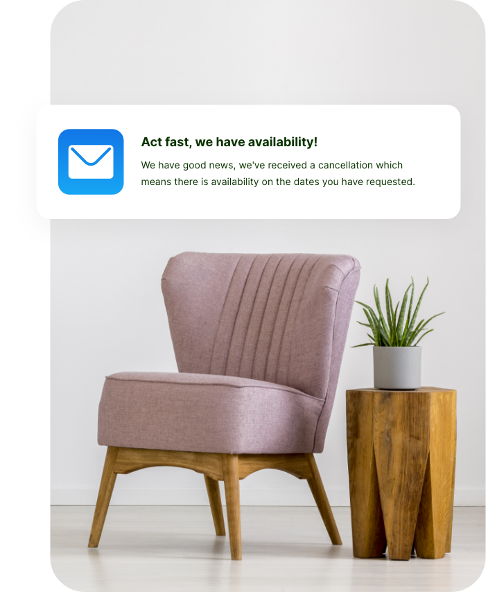 If your accommodation is already booked, your guests can now choose to complete a simple form to join a Waiting List for the taken dates they have selected. They will be automatically contacted when cancellations occur, capturing their business, simplified.